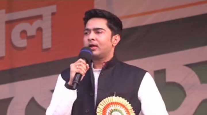 डायमंड हार्बर के केल्लार मठ में तृणमूल सांसद अभिषेक बनर्जी ने सभा को संबोधित करते हुए