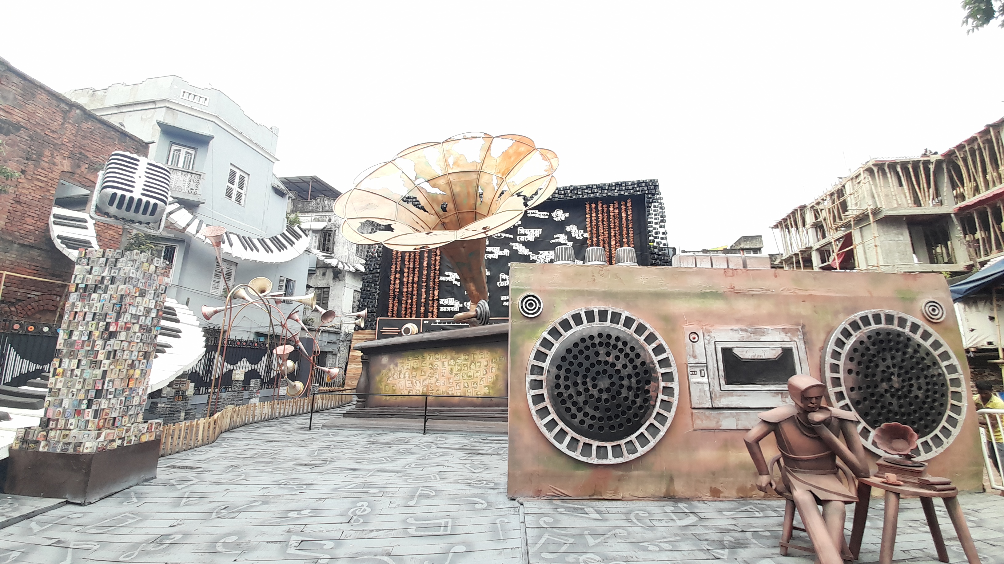 उन्होंने बताया कि चाहे वो रेडियो हो या ग्रामोफोन, चाहे पुरानी कैसेट हो या फिर उसकी रील, पंडाल में आपको सभी संबंधित चीजें दिखेंगी। पंडाल में कई संगीतकारों की पेंटिंग्स भी लगाई गई है। इस बार कमिटी अपना 83वां वर्ष मना रही है।