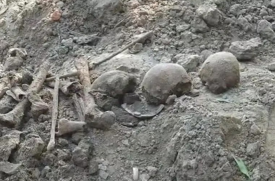 ज़मीन खोदते समय दो इंसानी खोपड़ियां और कई हड्डियां मिलीं। तृणमूल के स्थानीय विधायक का कहना है कि ये घर पूर्व सीपीएम नेता का था।