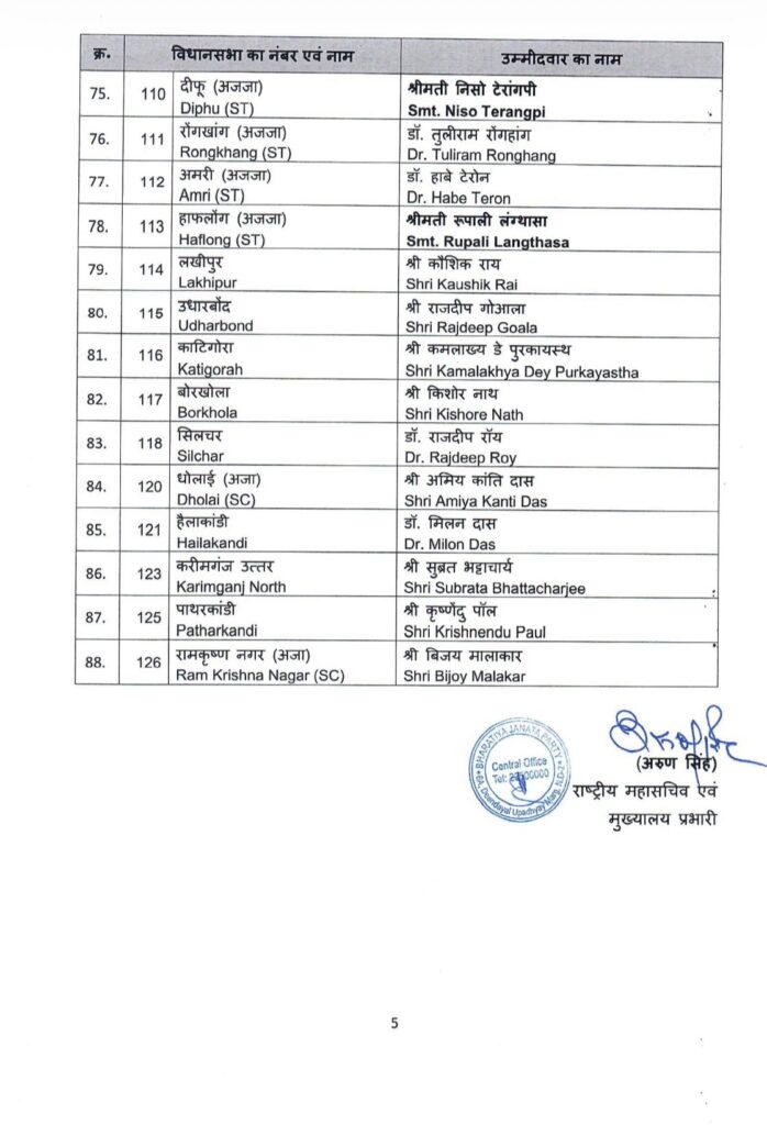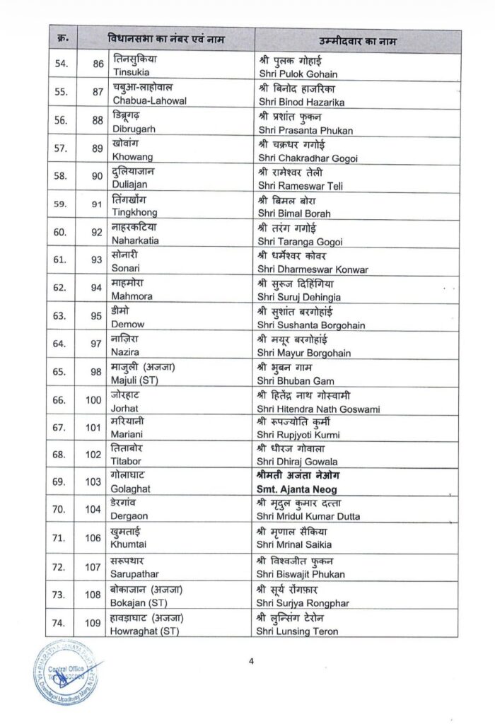 इस लिस्ट में 88 प्रत्याशियों के नाम का ऐलान किया गया है। सूची में एक दिन पहले पार्टी में आए प्रद्यूत बारदोलोई को टिकट दिया गया है। वह दिसपुर से चुनाव लड़ेंगे।