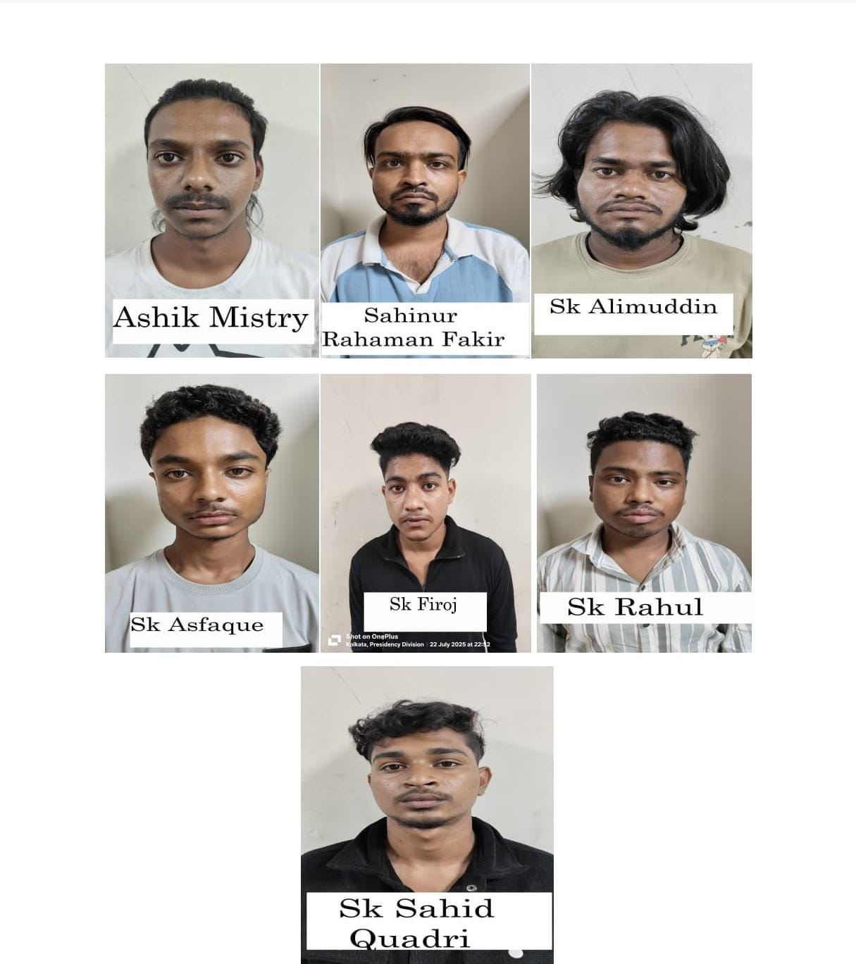 जांच के दौरान, उनके बयानों के अनुसार, तीन और आरोपी व्यक्ति एस.के. साहिद कादरी (20), एस.के. अलीमुद्दीन (21) और एस.के. फिरोज (20), को गिरफ्तार किया गया।
