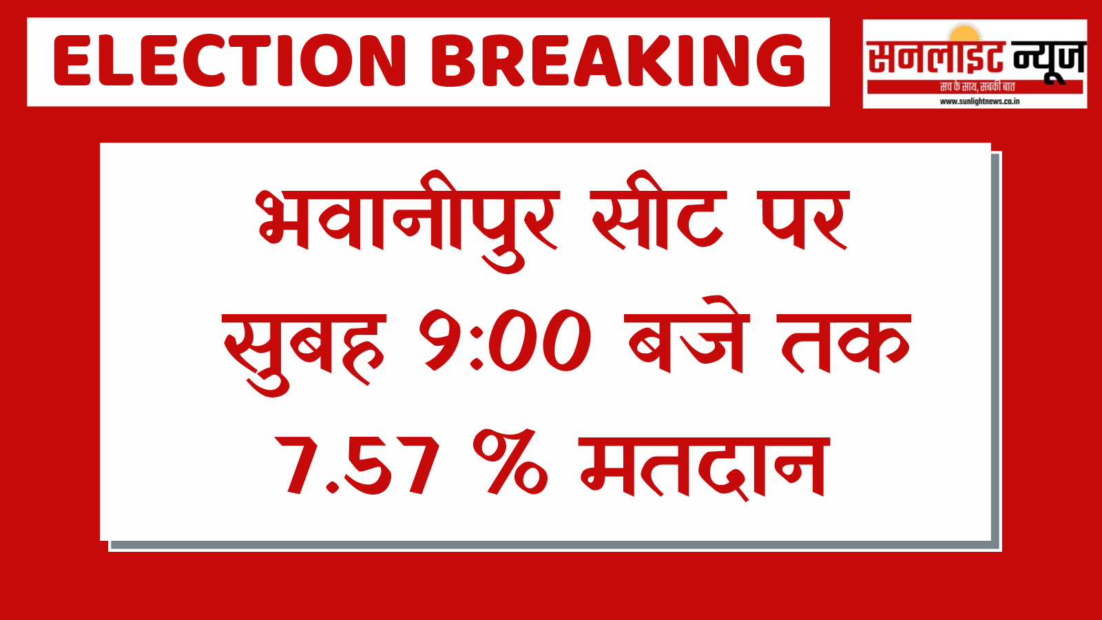 आज भवानीपुर, समशेरगंज और जंगीपुर की सीटों पर चुनाव हो रहे हैं। सुबह से ही कड़ी सुरक्षा के बीच लोग वोट देने केंद्र पर पहुँच रहें हैं। सुबह 9 बजे तक भवानीपुर सीट पर 7.57% मतदान हुए हैं। समशेरगंज में 16.32% मतदान हुए हैं और जंगीपुर में 17.51% मतदान हुए हैं।