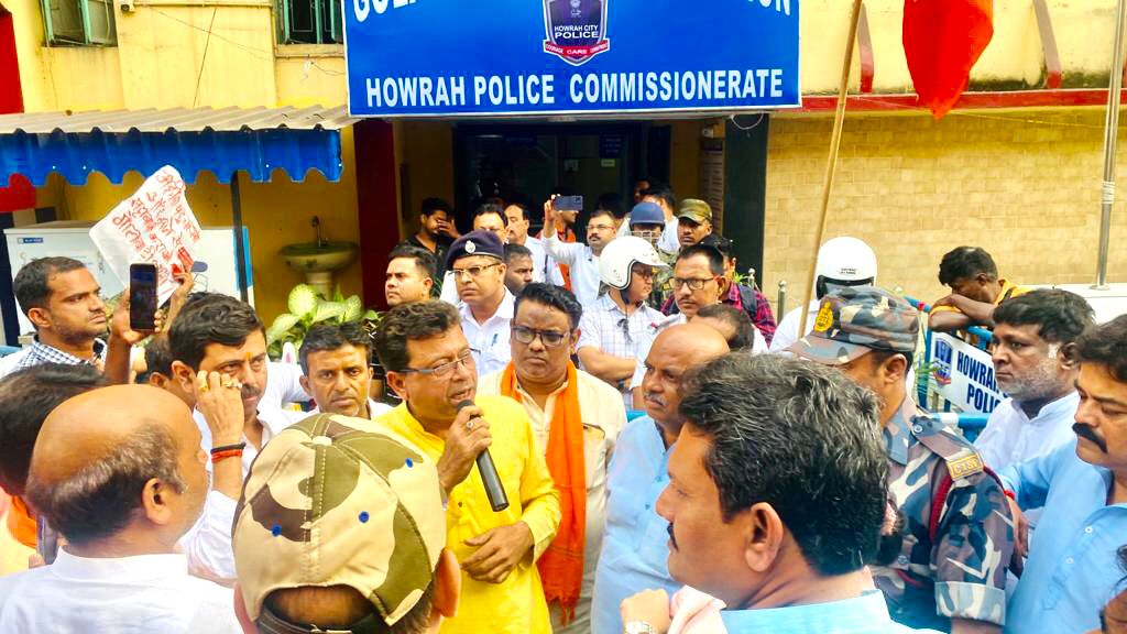 सनलाइट, हावड़ा। उत्तर हावड़ा में बढ़ रहे गुंडागर्दी, अवैध वसूली, इलाके में व्याप्त सट्टेबाजी और विगत होली के पूर्व पार्टी कार्यकर्ताओं पर हुए हमले सहित प्रशासन की उदासीनता के खिलाफ भाजपा उत्तर हावड़ा तीनों मण्डल अध्यक्ष आनंद सोनकर, संजीव शुक्ला और सुदीप घोष के नेतृत्व में गोलाबाड़ी थाने का घेराव कर ज्ञापन दिया गया और आरोपियों के ख़िलाफ़ करवाई करने की माँग की गयी।