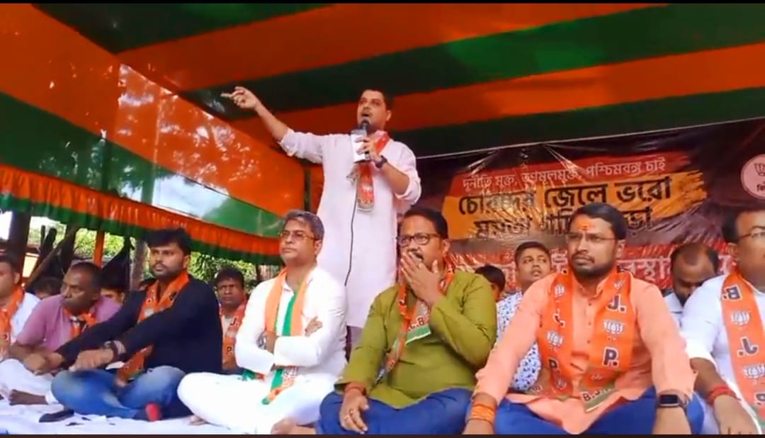 पश्चिम बंगाल सरकार में भ्रष्टाचार के आरोप लगाते हुए मुख्यमंत्री ममता बनर्जी के इस्तीफे की मांग को लेकर उत्तर कोलकाता जिला भाजपा द्वारा धरना प्रदर्शन किया गया है।