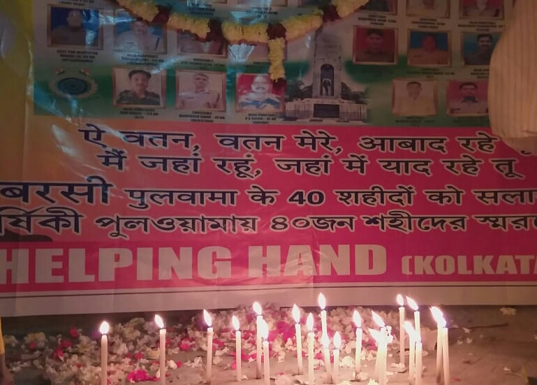 सनलाइट, कोलकाता। पिछले वर्ष पुलवामा हमले में शहीद हुए जवानों को श्रद्धांजलि देने के लिए एनसीसी हेल्पिंग हैंड्स द्वारा अनुराग ओझा के नेतृत्व में कैंडल मार्च निकाला गया।