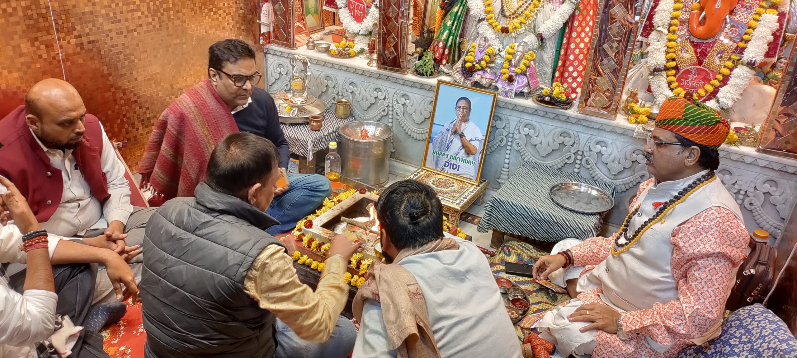 हिन्दी प्रकोष्ठ उत्तर कोलकाता के सभापति एवं टीएमसी प्रवक्ता स्वयं प्रकाश पुरोहित की उपस्थिति में पंडित अशोक भादानी के आचार्तव्य में हुए यज्ञ एवं पूजा के बाद केक काटा गया।