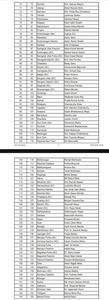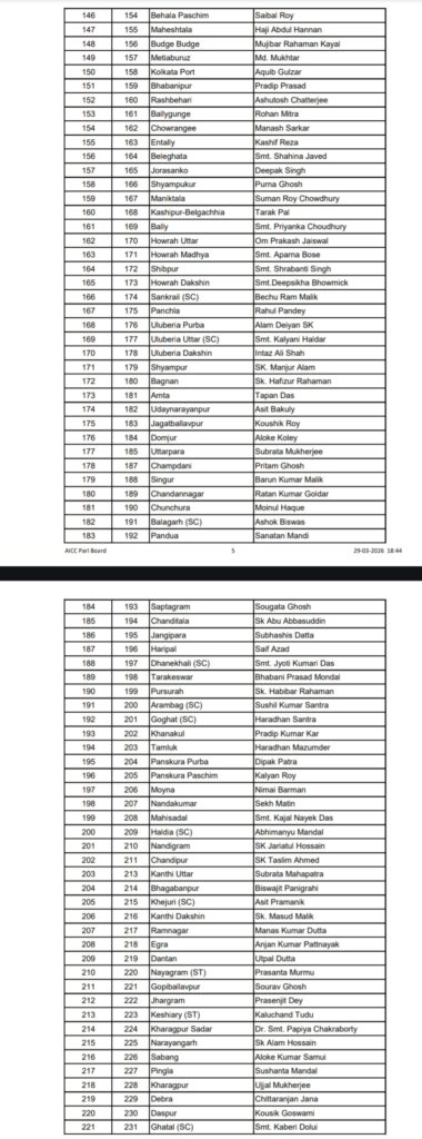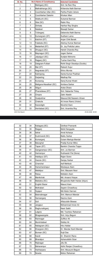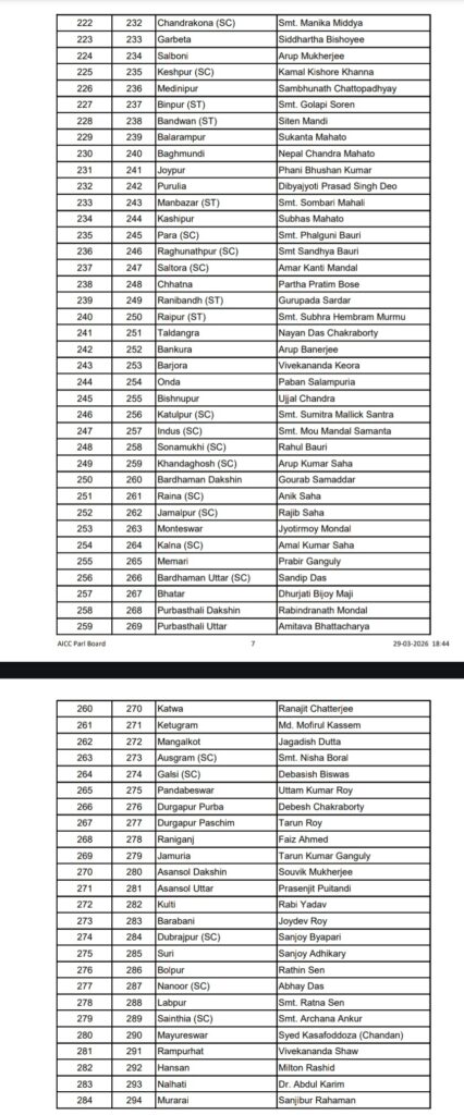 Congress Candidate List West Bengal – बंगाल चुनाव – कांग्रेस ने जारी की 284 उम्मीदवारों की सूची
