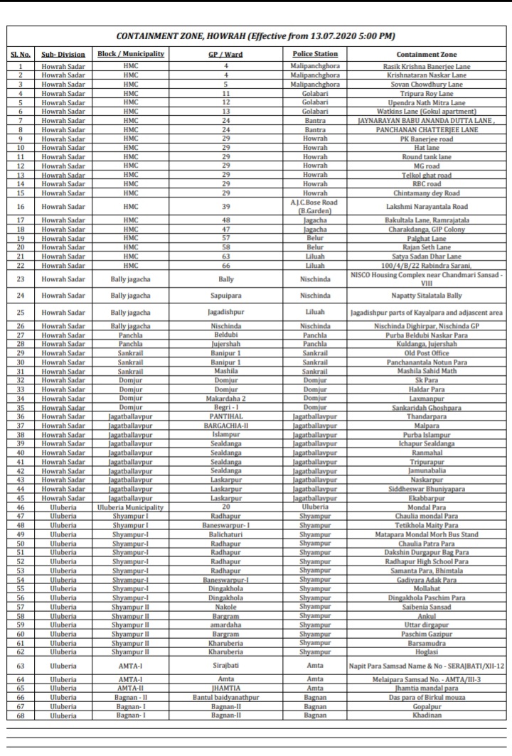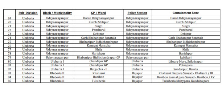 हावड़ा में कंटेन्मेंट जोन बढ़कर हुए 85, ये रही पूरी सूची बंगाल July 13, 2020sunlight सनलाइट। राज्य में बढ़ते कोरोना के मामलों को देखते हुए कंटेन्मेंट जोन में लॉकडाउन लागू है।जिसके बाद मामलो के अनुसार कंटेन्मेंट जोन में बदलाव हो रहा है। अब हावड़ा में कंटेन्मेंट जोन की संख्या बढ़कर 85 हो गई है। हावड़ा के 85 कंटेन्मेंट जोन की सूची Post Views: 778 Share from here