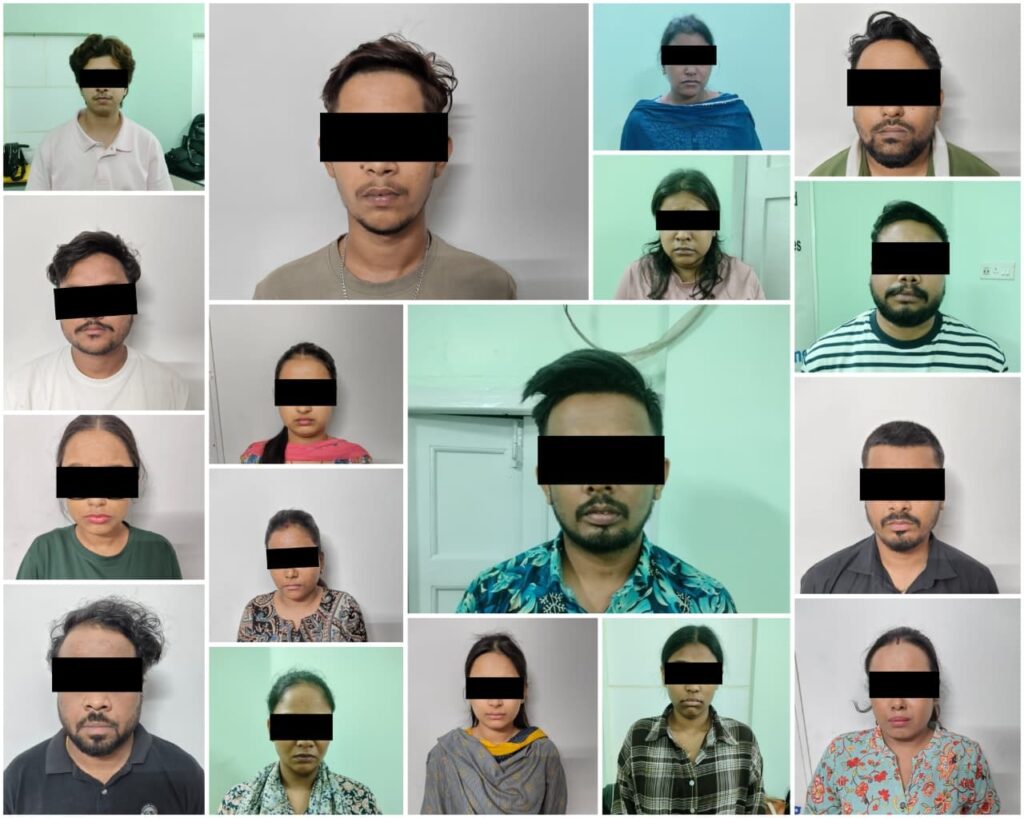 इस साइबर ठगी मामले में पुलिस ने 17 आरोपियों को गिरफ्तार किया है। जिनमे 8 पुरुष और 9 महिलाएँ शामिल है।
