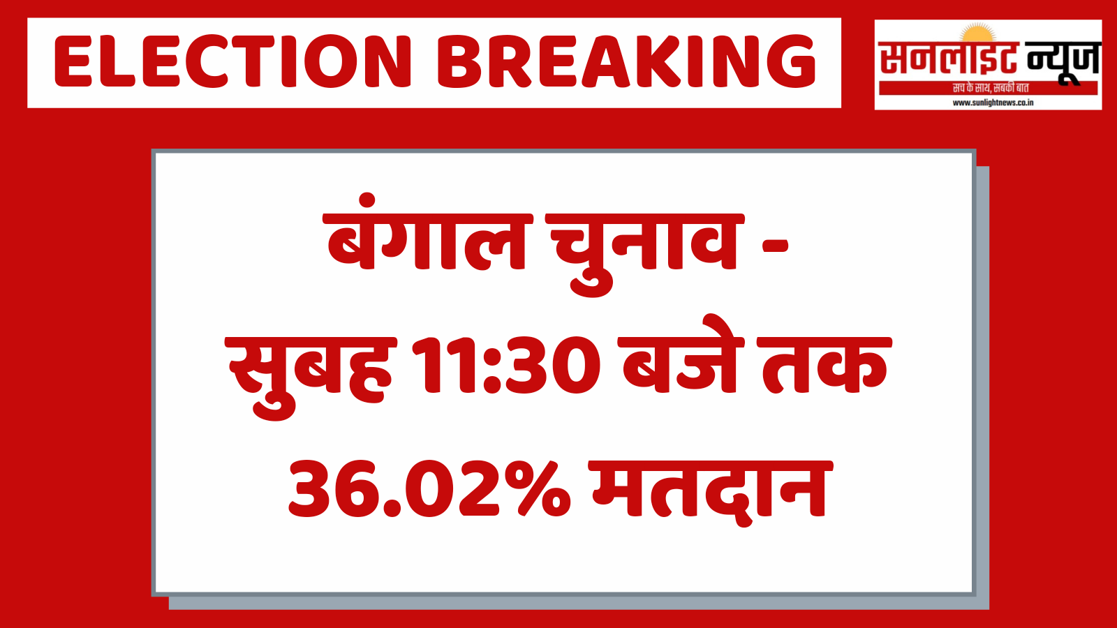 पश्चिम बंगाल चुनाव के पांचवे चरण में सुबह 11:30 बजे 36.02% मतदान हुआ है। 6 जिलों की 45 सीटों पर आज मतदान चल रहे हैं। नार्थ 24 परगना में 33.34%, कालिम्पोंग में 34.69%, जलपाईगुड़ी में 39.27%, दार्जलिंग में 33.51%, नदिया में 37.40% और बर्धमान में 38.62% मतदान हुए हैं।