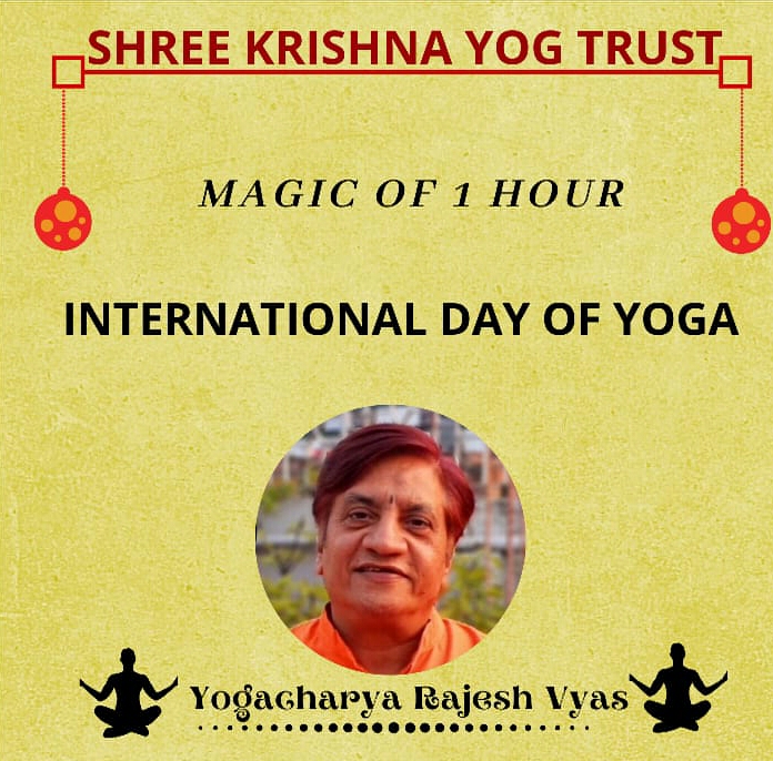 सनलाइट, कोलकाता। अंतर्राष्ट्रीय योग दिवस पर श्री कृष्ण योग ट्रस्ट द्वारा फेसबुक के माध्यम से 1 घंटे का योग सत्र आयोजित किया गया है। सोशल डिस्टेंसिंग को ध्यान में रखते हुए श्री कृष्ण योग ट्रस्ट के इस कार्यक्रम को ट्रस्ट के फेसबुक पेज पर शाम पांच बजे से लाइव किया जाएगा जिसमें प्रसिद्ध योगाचार्य राजेश व्यास लोगों को योग के गुर सिखाएंगे।
