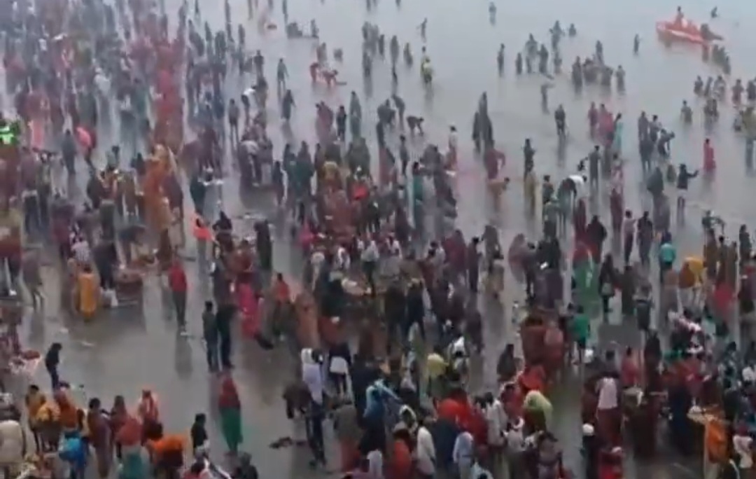 Makar Sankranti आज है। सुबह से ही लोग स्नान के लिए पहुँच गए हैं। रात से ही तट पर तीर्थयात्रियों की भीड़ लगी रही।