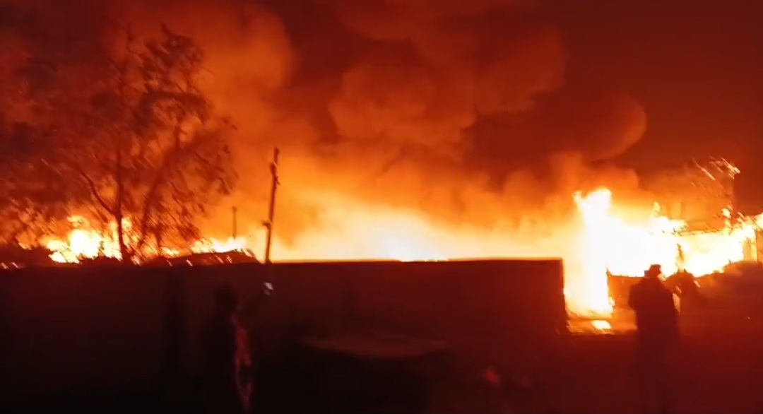आग इतनी भीषण है कि दूर से ही धुएं का गुबार और लपटें दिख रही है। हालांकि, आग लगने की घटना में अभी तक किसी के हताहत होने की खबर नहीं है।