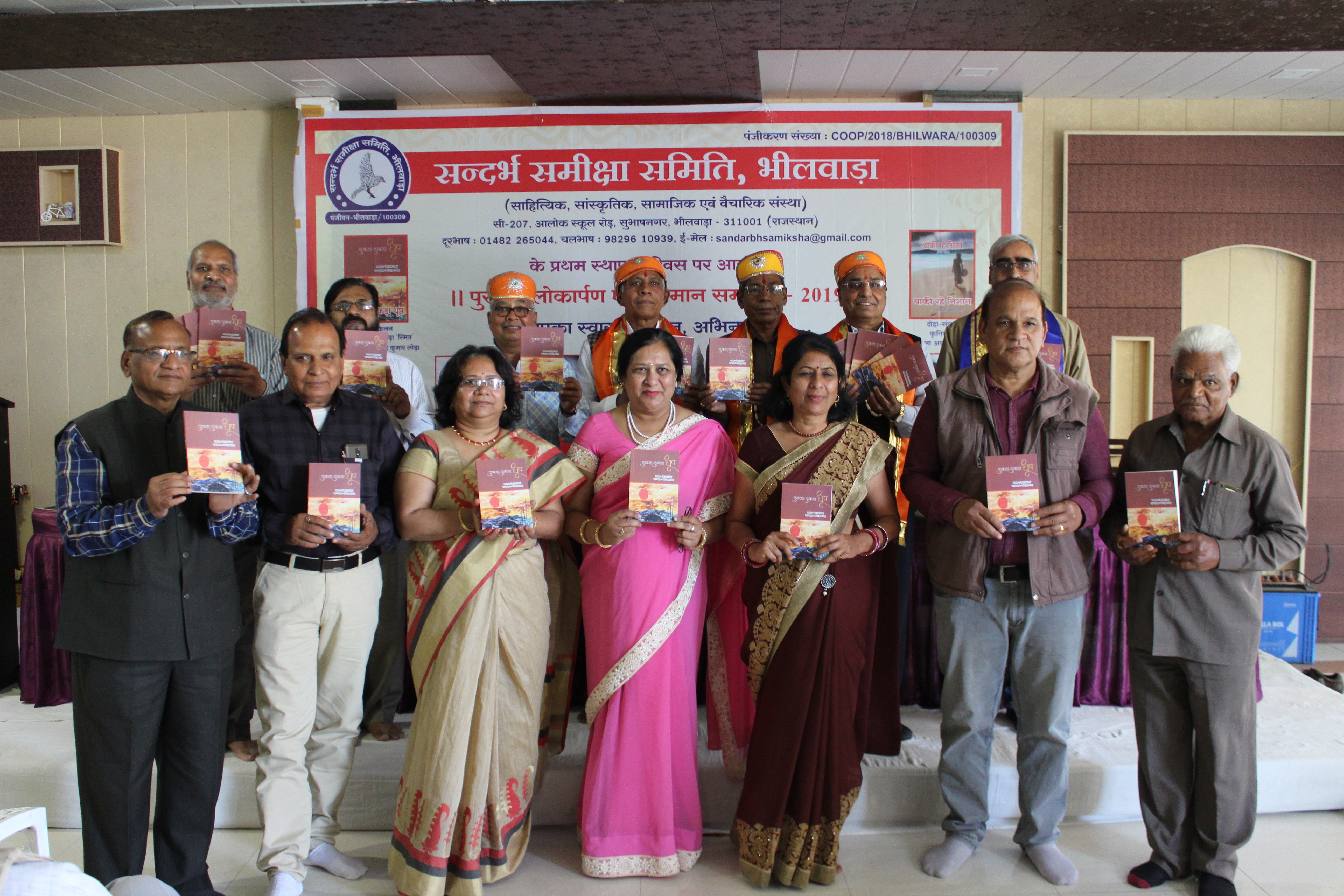 सनलाइट, भीलवाड़ा। साहित्यिक, सांस्कृतिक, सामाजिक एवं वैचारिक संस्था “सन्दर्भ समीक्षा समिति” द्वारा अपने प्रथम स्थापना दिवस पर पुस्तक लोकार्पण एवं सम्मान समारोह महाराजा रेस्टोरेन्ट, भीलवाड़ा के सभागार में आयोजित किया गया।