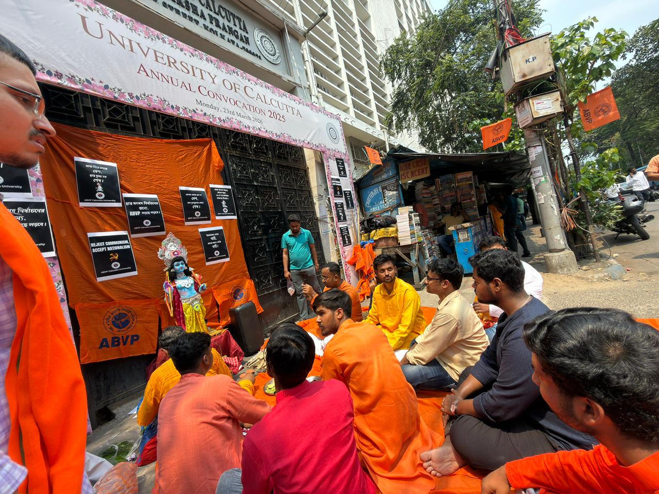 कॉलेज स्ट्रीट स्थित विश्वविद्यालय परिसर के बाहर सुबह से ही छात्रों का जमावड़ा शुरू हो गया था। भगवान राम की प्रतिमा स्थापित कर विधि-विधान से पूजा-अर्चना की गई।