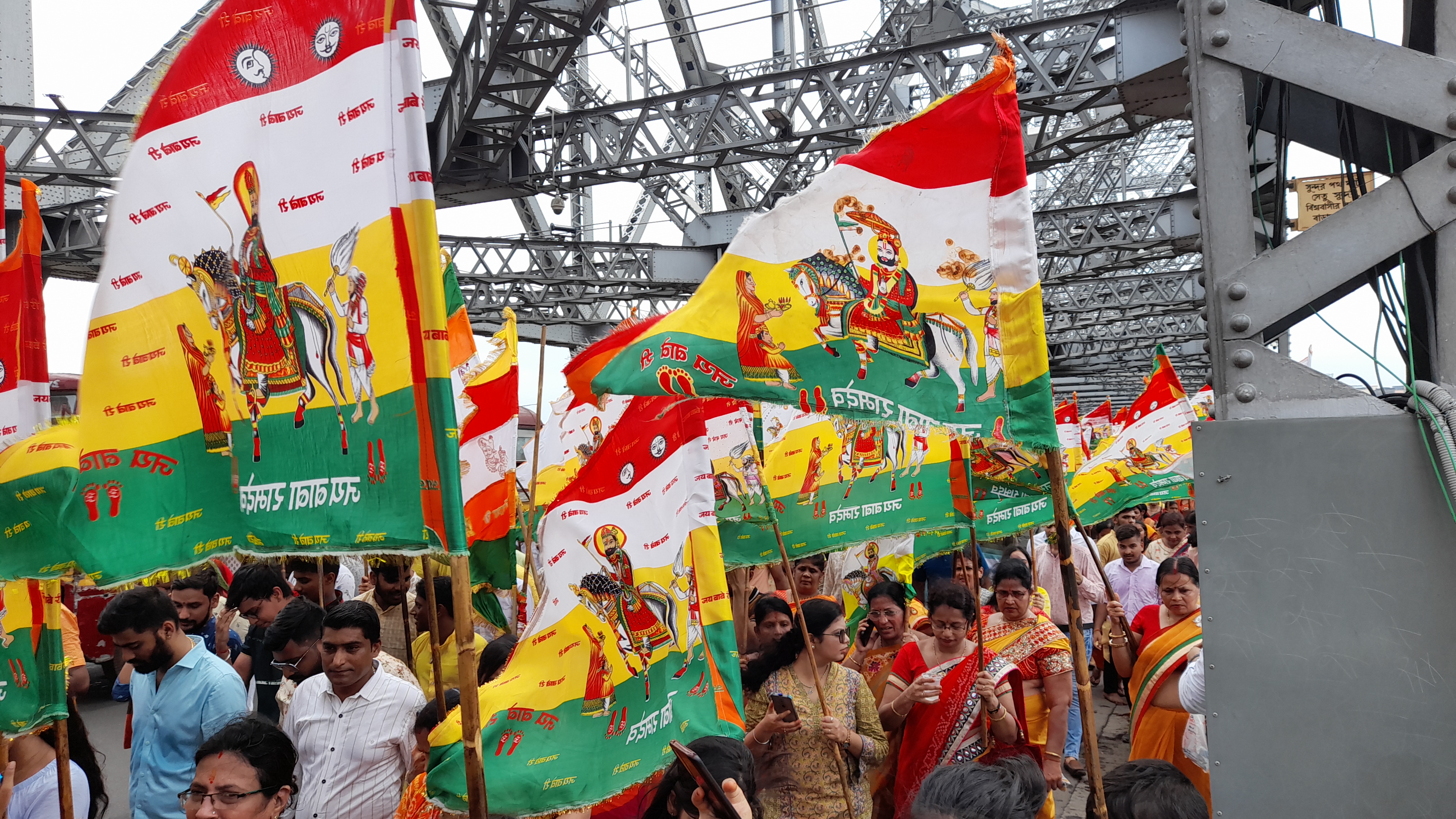 पोस्ता स्थित गणेश मंदिर से शुरू हुई यह ध्वजा पदयात्रा कलाकार स्ट्रीट, महात्मा गांधी रोड़, हावड़ा ब्रिज होते हुए लिलुआ स्थित पुष्करणा ब्रह्म बगीचा पहुंची।