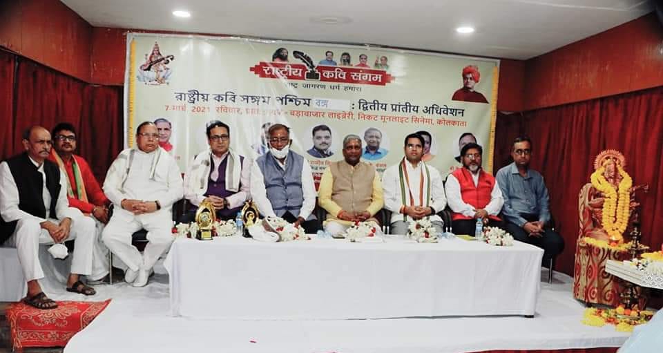 कोलकाता। ऐतिहासिक पृष्ठभूमि की धरोहर बड़ाबाजार लाइब्रेरी के आचार्य विष्णुकांत शास्त्री सभागार में राष्ट्रीय कवि संगम की पश्चिम बंगाल इकाई का द्वितीय प्रांतीय अधिवेशन एवं एक सफलतम कवि सम्मेलन का आयोजन किया हुआ।