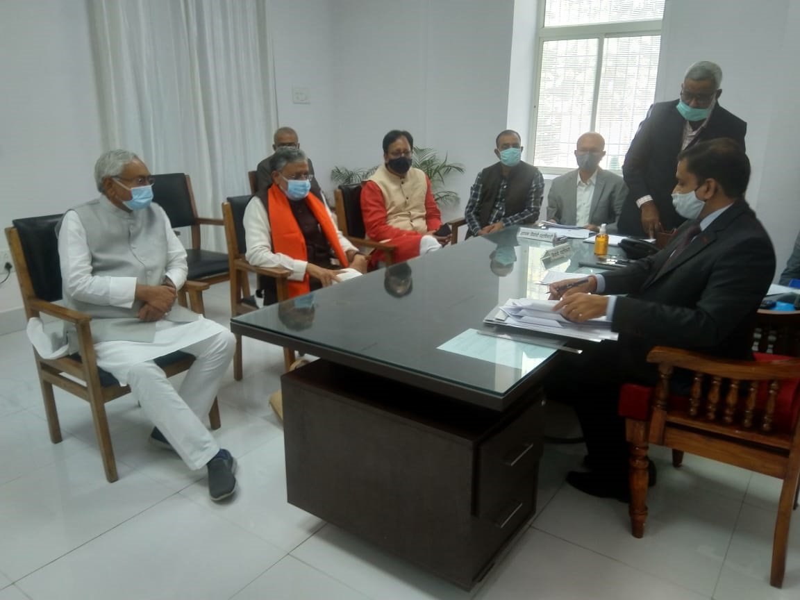 इस मौके पर बिहार के मुख्यमंत्री नीतीश कुमार बीजेपी प्रदेश अध्यक्ष डॉ संजय जायसवाल, दोनों डिप्टी सीएम तारकिशोर प्रसाद, रेणु देवी, मंगल पांडेय, पूर्व मंत्री श्रवण कुमार, एमएलसी देवेश चंद्र ठाकुर, हम के अध्यक्ष व पूर्व मुख्यमंत्री जीतन राम मांझी, वीआईपी पार्टी प्रमुखव मंत्री मुकेश सहनी समेत बड़ी संख्या में एनडीए के नेता मौजूद रहे।