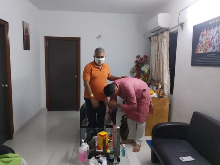 आज सुबह सौमित्र खान प्रदेश अध्यक्ष दिलीप घोष के घर जा पहुंचे। उन्होंने विजया दशमी के मौके पर घोष का आशीर्वाद लिया। दोनों ने एक-दूसरे को उपहार भी दिया। सौमित्र ने हाल ही में अस्पताल से लौटे दिलीप घोष के बेहतर स्वास्थ्य की प्रार्थना भी की। कई मिनट तक दोनों एक साथ बैठे रहे और बातें करते रहे।