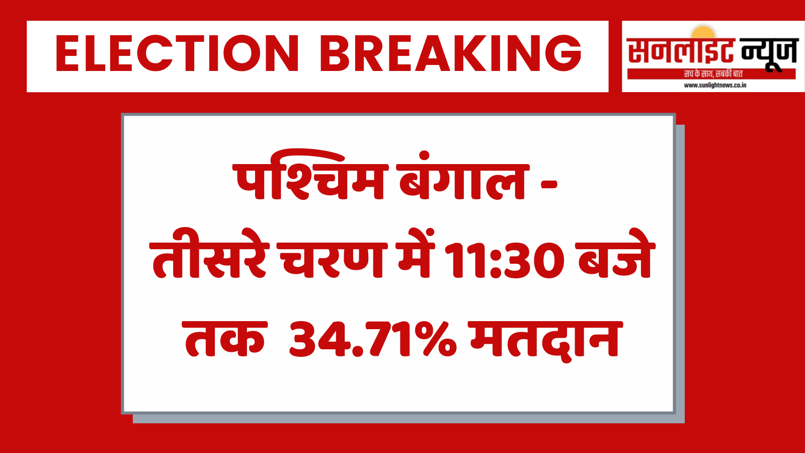 पश्चिम बंगाल – तीसरे चरण में 11:30 बजे तक 34.71% मतदान बंगाल April 6, 2021sunlight पश्चिम बंगाल विधानसभा चुनाव के तीसरे चरण में सुबह 11:30 बजे तक 34.71% मतदान हुए हैं। दक्षिण 24 परगना में 32.44%, हावड़ा में 36.97% और हुगली में 37.26% मतदान हुए हैं। Post Views: 439 Share from here