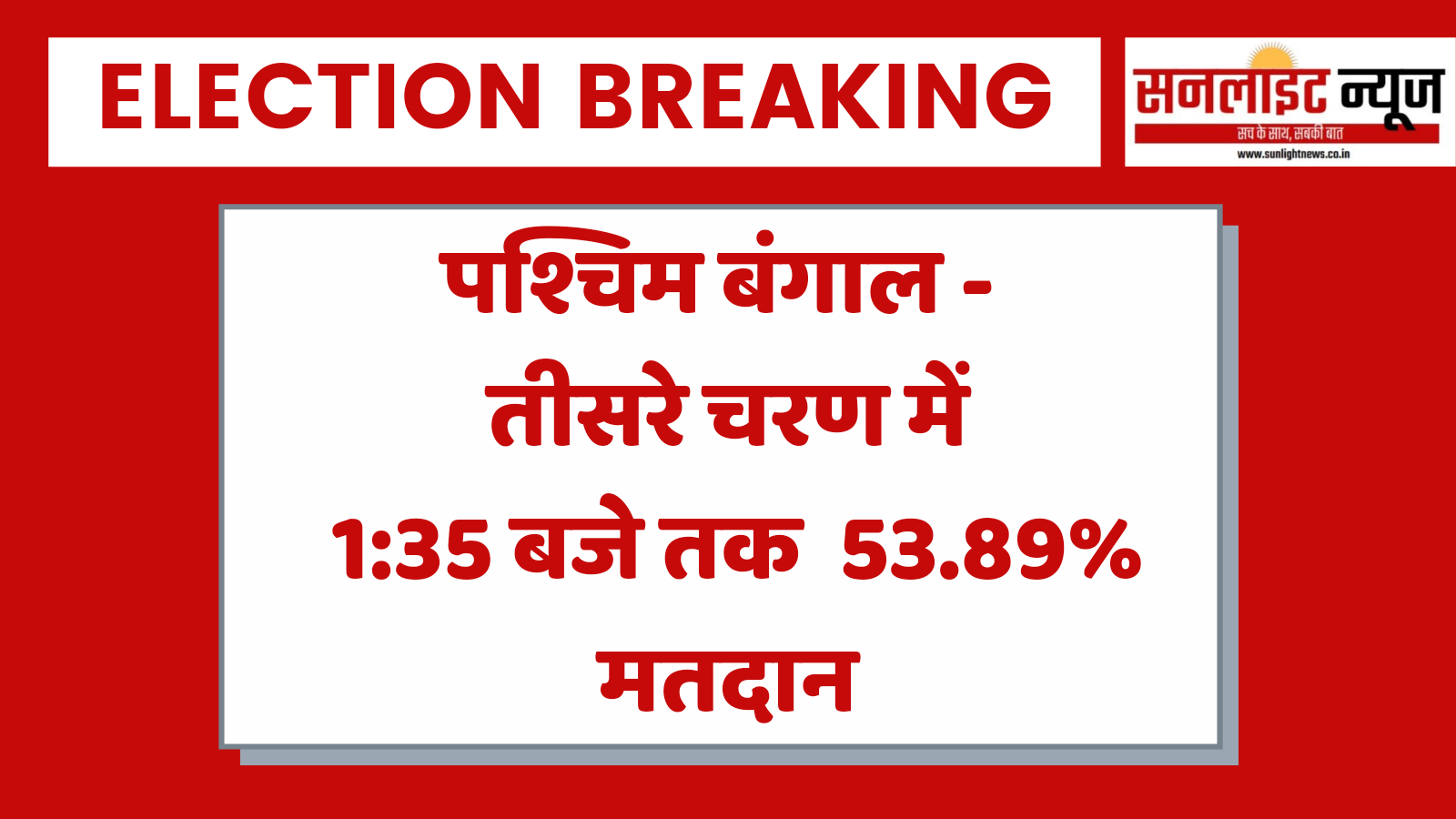 पश्चिम बंगाल – तीसरे चरण में 1:35 बजे तक 53.89% मतदान बंगाल April 6, 2021April 6, 2021sunlight पश्चिम बंगाल विधानसभा चुनाव के तीसरे चरण में 1:35 बजे तक 53.89% मतदान हुए हैं। दक्षिण 24 परगना में 51.67%, हावड़ा में 53.95% और हुगली में 58.15% मतदान हुए हैं। Post Views: 402 Share from here